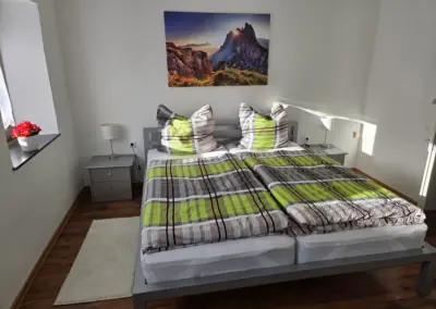 Hunde: Stubenreine, friedliche und haftpflichtversicherte (Nachweis erbeten) Hunde sind auf Anfrage gerne gesehen. Betten und Couch sind jedoch „hundefreie Zone“. Pro Hund wird eine Gebühr in Höhe von € 10.00 pro Übernachtung erhoben.