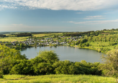 Der im landschaftlich reizvollen Tal der Prüm gelegene Stausee bei Biersdorf (ca. 12 Kilometer nordwestlich von Bitburg) ist das touristische Zentrum der Südeifel. Der 35 ha große Stausee bietet in den wärmeren Monaten viele verschiedene Möglichkeiten den Tag zu gestalten. Beim Rudern, Paddeln und Angeln kommen Erholungssuchende voll auf ihre Kosten. Weiterhin sorgen auch der Kiosk, ein Biergarten und Spielplätze für einen schönen Aufenthalt.